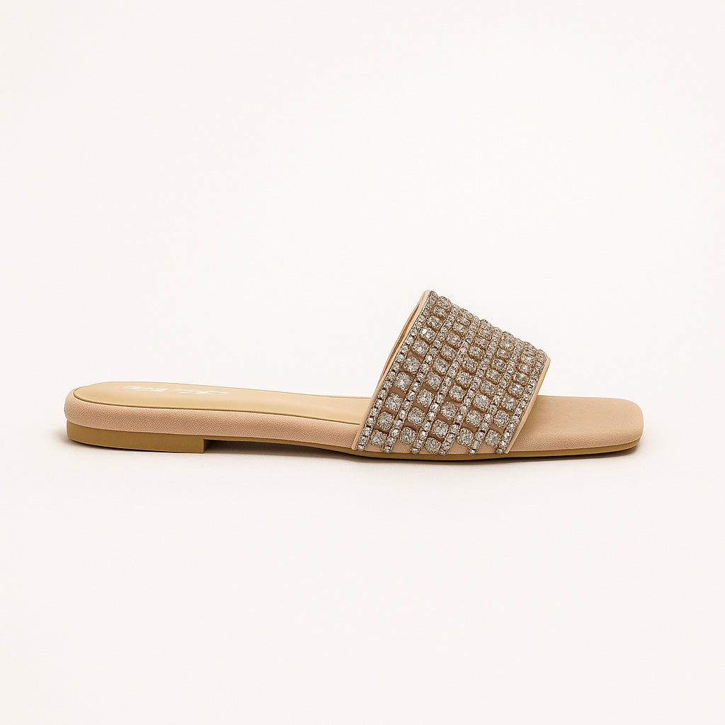 Gold Mist showcases meticulous hand-crafted artistry with a luxuriously soft sole designed for all-day comfort. Each pair features premium quality materials finished to perfection, adorned with intricate crestal beadwork that crowns the upper. This expert-level craftsmanship delivers both elegance and wearability, making it an exceptional choice for those who appreciate refined details and superior construction.